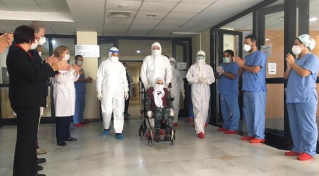 COVID-19'u yenen 101 yaşındaki hasta alkışlarla taburcu oldu