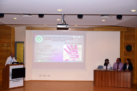 Kocaeli Üniversitesi Tıp Fakültesi Konferans Salonu'nda dün 10 Ekim Dünya Ruh Sağlığı Kapsamında "Çalışma Ortamında Ruh Sağlığı ve Sağlıkta Şiddet" konulu konferans düzenlendi.