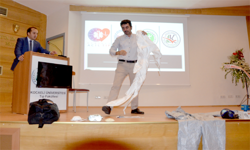 Derince Eğitim Araştırma Hastanesi Acil Tıp Kliniğinden Uzm.Dr.Onur Karakayalı ve Bahattin Koçyiğit tarafından Kocaeli Üniversitesi Tıp Fakültesi Konferans Salonu’nda KBRN farkındalık eğitimi verildi