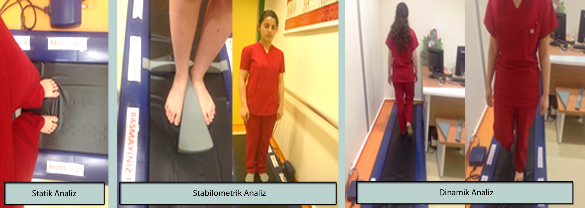 Kocaeli Üniversitesi Araştırma Ve Uygulama Hastanesi Podoloji BirimiPodoloji polikliniğinde tanı amacıyla hastanın ihtiyacına göre baropodometrik analizler (statik, dinamik, stabilometrik) , podoscaner ile kinetik analiz, biothesiometer (vibrasyon) testi, ayak bileği-kol kan basıncı indeksi ölçümün yapılır. Tespit edilen probleme yönelik ortezler ve tabanlıklar üç boyutlu yazılım ile tasarlanarak CNC sistemi ile üretilir. Bazı durumlarda ateller kullanılabilir ve hastanın patolojisine, ayak ölçülerine uygun ayakkabı ve terlikler belirlenir. |
