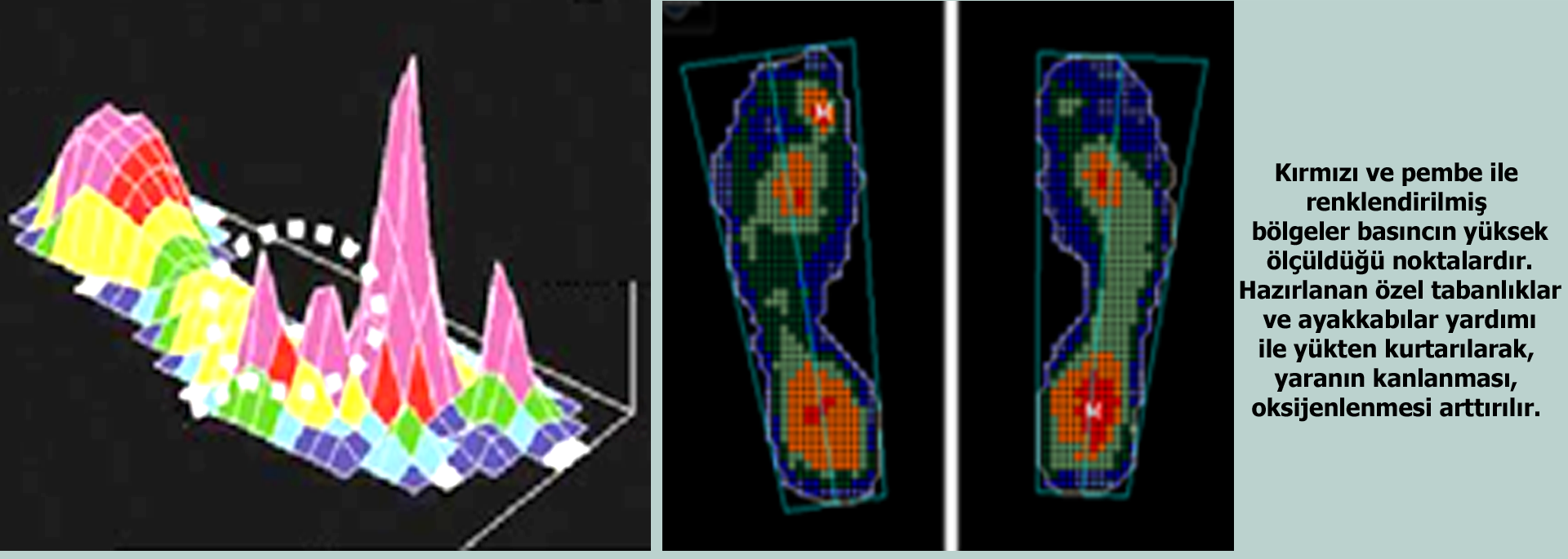 Diyabetli hastalarda;Motor nöropatinin en ileri komplikasyonu olan charcot deformitesi (ayak kemiklerinin kırılarak çökmesi) riskini erken dönemde fark etmek, gelişmesini önlemek, charcot deformitesi gelişen hastalarda ise ayakta gelişebilecek şekil bozuklarını en aza indirmek için girişimler yapılır. Diyabetik Ayak Ülseri Gelişmiş Olan Hastalarda; Yara üzerindeki basıncı gideren, tedavi edici tabanlık, ayakkabı ve terlikler geliştirilir. |